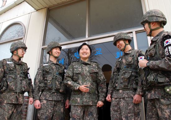 ¡°¾î¼ ¿À¼¼¿ä. ¹Ý°©½À´Ï´Ù.¡± 27ÀÏ ¿ÀÀü, °æ±âµµ ¿¬ÃµÀÇ 28»ç´Ü GOP´ë´ë¿¡ µµÂøÇÑ ÀÏÇàÀ» ¸Â¾ÆÁØ ÀÌ´Â ¡®´ëÇѹα¹ ¿©¼º ±ºÁ¾¸ñ»ç 1È£¡¯ Á¤ÀºÇØ(¿©¡¤37) ´ëÀ§¿´´Ù. 2015³â 7¿ù ºÎÀÓÇÑ ÀÌ·¡ 21°³¿ù° Áß¼ºÎÀü¼± ÃÖÀü¹æ ºÎ´ë¿¡¼ º¹¹« ÁßÀÎ Á¤ ¸ñ»ç´Â ¹à°í Ȱ±âÂ÷º¸¿´´Ù.