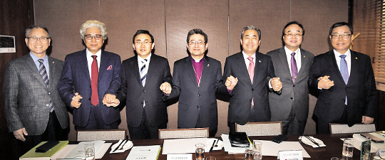 ¡ã Çѱ¹±³È¸ÃÑ¿¬ÇÕ ¼Ò¼Ó ±³´ÜÀåµéÀÌ 27ÀÏ ¼¿ï°¡µçÈ£ÅÚ¿¡¼ ±¹°¡ÀαÇÁ¤Ã¥±âº»°èȹ(NAP) ¹Ý´ë Ä·ÆäÀÎÀ» °áÀÇÇÑ µÚ ±â³ä»çÁøÀ» ÃÔ¿µÇϰí ÀÖ´Ù. ¿ÞÂʺÎÅÍ Á¤µ¿±Õ(±âÇϼº) ¼Àͼö(¿¹Àå°³Çõ) ¸²Çü¼®(¿¹ÀåÅëÇÕ) ÃÑȸÀå, Àü¸í±¸ ±â°¨ °¨µ¶È¸Àå, ¹ÚÁ¾Ã¶(±âħ) À±¼º¿ø(±â¼º) ±è¼ººÀ(¿¹Àå°í½Å) ÃÑȸÀå.